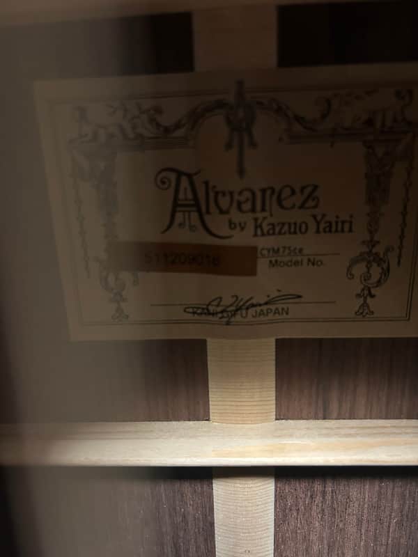 Alvarez Yairi Masterworks Series CYM75ce Cutaway Nylon String Classical Acoustic Guitar with Electronics - Natural. It's got some imperfections in the lacquer on the bottom of the guitar (pictured) Aside from that, It is in very good condition with some light signs of use (shallow surface scratches or smudges that don’t show up in pictures and can only be seen upon close inspection)