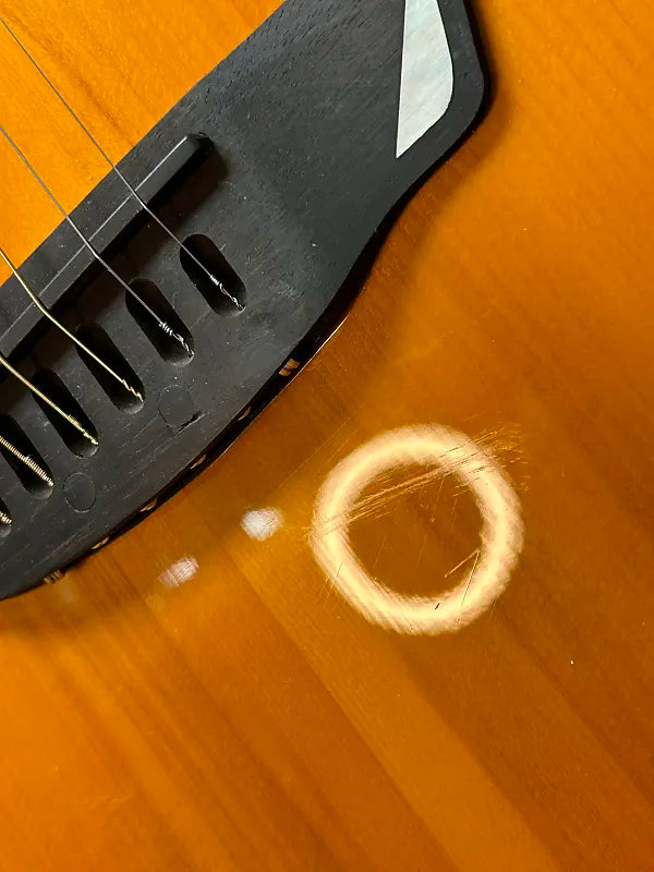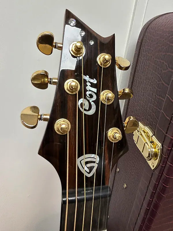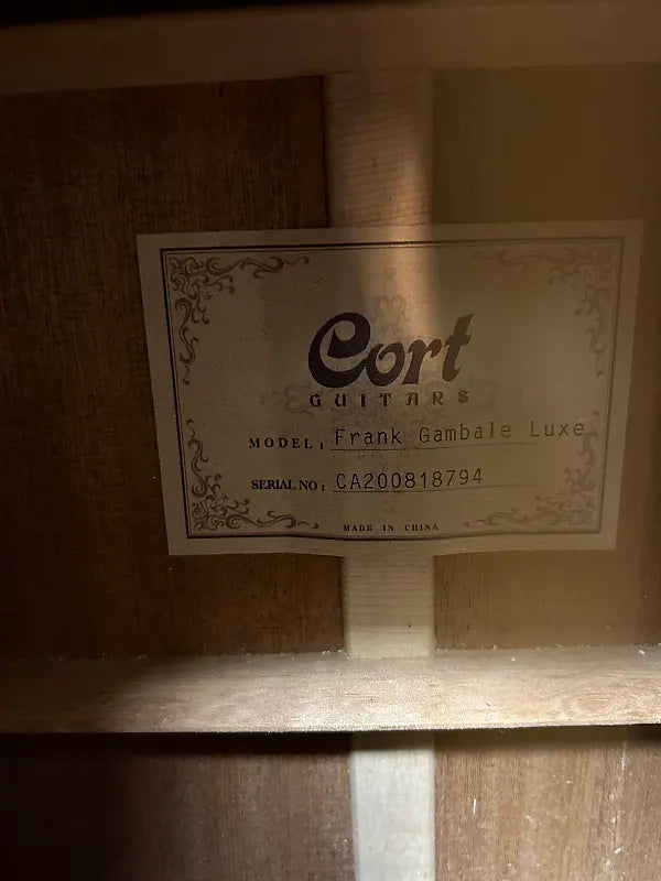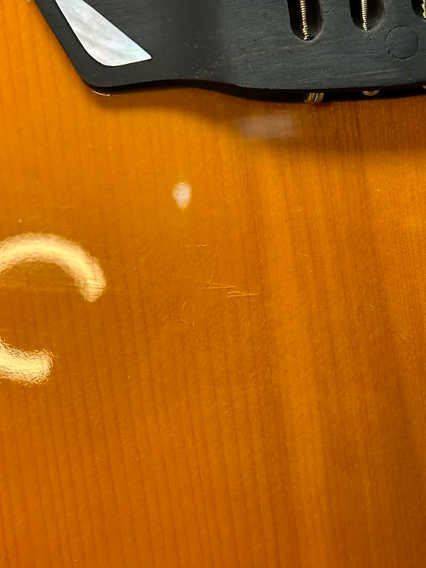 Cort LUXE Frank Gambale Series Adirondack Spruce/Blackwood Concert Cutaway Acoustic Electric Guitar- Natural Glossy. It's got a bunch of scuffs and smudges and the lacquer is a little funky around the bridge (pictured). Aside from that, There's no signs of significant damages or evidence of repairs. Electronics function as they should. There’s little to no fret wear. There are no buzzing or dead frets and the neck is straight. There is no cracking in the neck pockets or anywhere else on the guitar.All our instruments are guaranteed to arrive in the described condition or they are returnable.