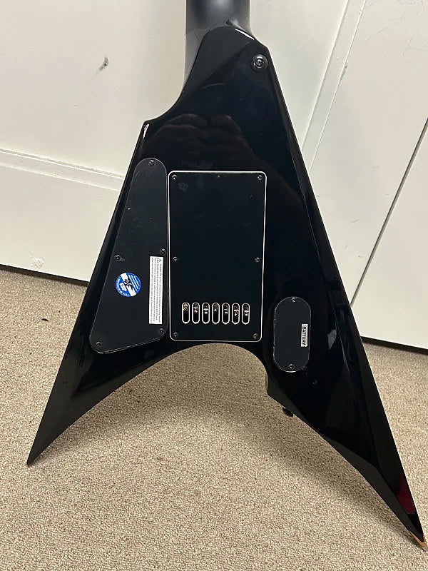 ESP LTD Arrow-1007 Baritone Evertune 7 String Electric Guitar - Black. It had damage to one point and the tip of the headstock that has been sealed and lacquered over. This does not affect how the guitar plays. Aside from that, it's got multiple shallow scratches and scuffs.