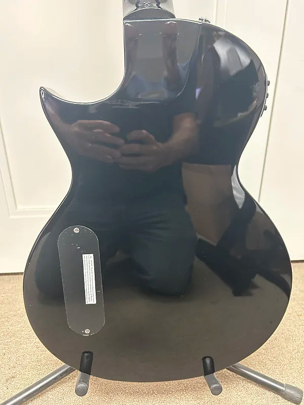 ESP LTD TL-12 12 String Thinline Acoustic Electric Guitar - Black. It appears to have had the bridge reinforced with glue. This repair does not affect how the guitar plays or stays in tune. Aside from that, it's got plenty of scuffs and shallow scratches but no other damages or evidence of repairs. Electronics function as they should. There’s little to no fret wear. There are no buzzing or dead frets and the neck is straight. There is no cracking in the neck pockets or anywhere else on the guitar.All our instruments are guaranteed to arrive in the described condition or they are returnable.