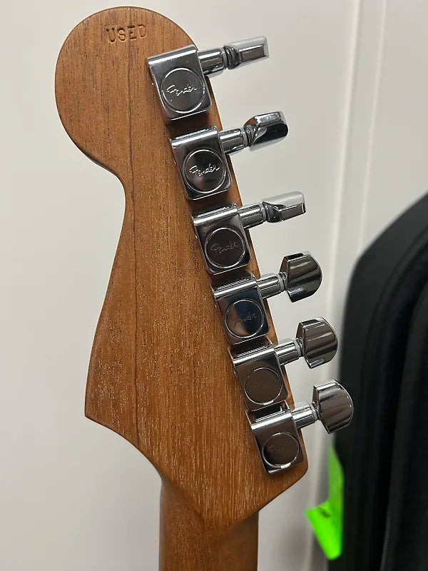 Fender American Acoustasonic Jazzmaster Acoustic Electric Guitar- Tobacco Sunburst. We did find a ding on the side during inspection (Pictured). Aside from that, It's in very good condition with light signs of use. There's no signs of damages or evidence of repairs. Electronics function as they should. There’s little to no fret wear. There are no buzzing or dead frets and the neck is straight. There is no cracking in the neck pockets or anywhere else on the guitar. All our instruments are guaranteed to arrive in the described condition or they are returnable.