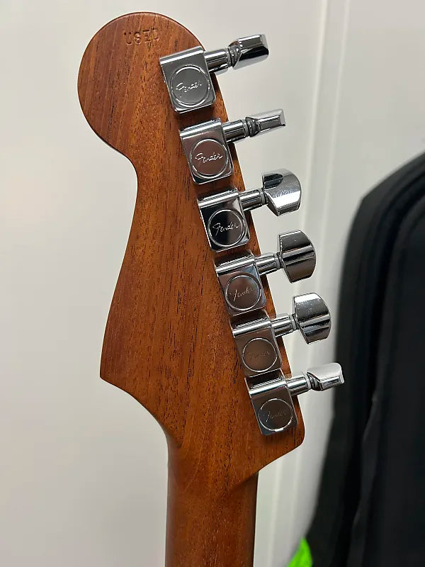 Fender American Acoustasonic Stratocaster Acoustic Electric Guitar - 3 Color Sunburst. It is in excellent condition with only light signs of use. There's no signs of significant damages or evidence of repairs. Electronics function as they should. There’s little to no fret wear. There are no buzzing or dead frets and the neck is straight. There is no cracking in the neck pockets or anywhere else on the guitar.All our instruments are guaranteed to arrive in the described condition or they are returnable.