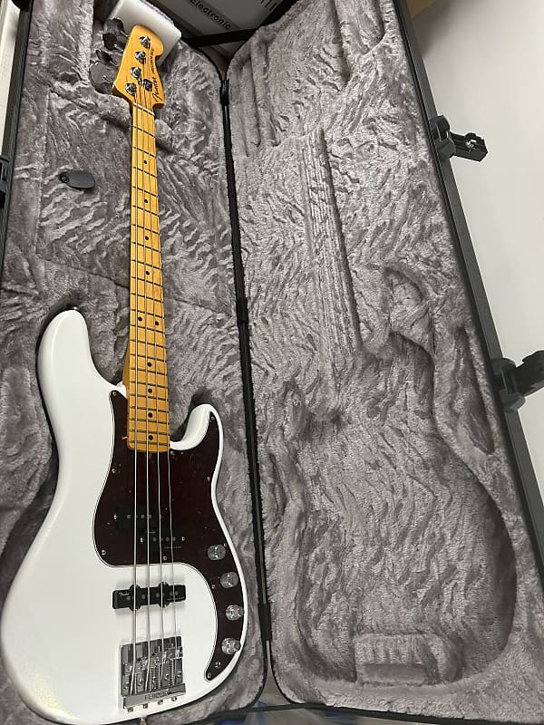 Fender American Ultra Precision Bass with Maple Fretboard - Arctic Pearl. This is in excellent condition with only light signs of use. Comes in the Hardcase.