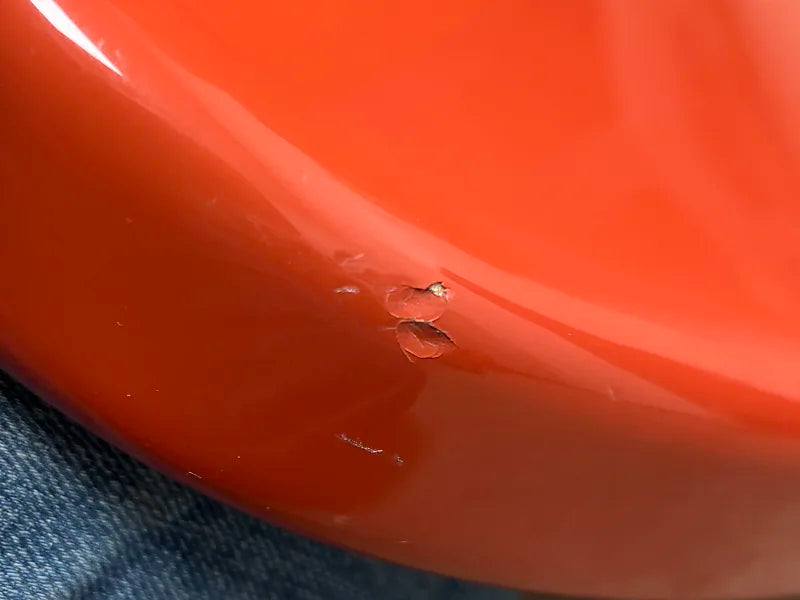 Fender Kurt Cobain Signature Jag-Stang - Fiesta Red. There's a dent on the bottom (pictured) Aside from that, It is in very good condition with some light signs of use (shallow surface scratches or smudges that don’t show up in pictures and can only be seen upon close inspection)