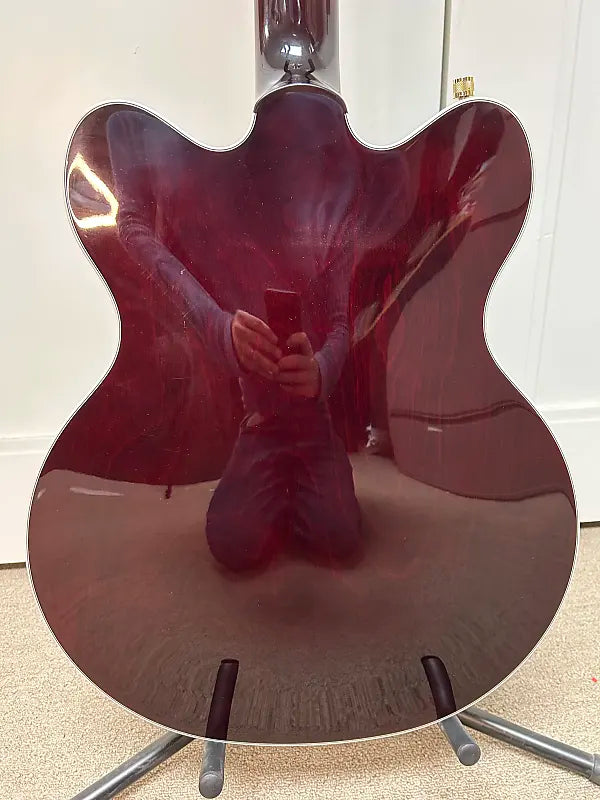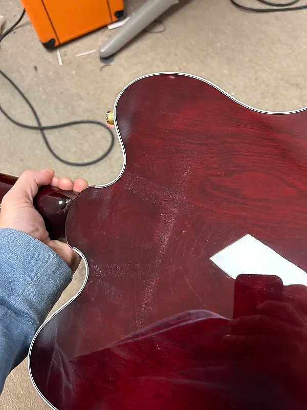 Gretsch G5422G-12 12 String Semi Hollowbody Electromatic Classic - Walnut Stain. It does have some scuffs and scratches, but no signs of significant damages or evidence of repairs. Electronics function as they should.There’s little to no fret wear. There are no buzzing or dead frets and the neck is straight. There is no cracking in the neck pockets or anywhere else on the guitar. All our instruments are guaranteed to arrive in the described condition or they are returnable.