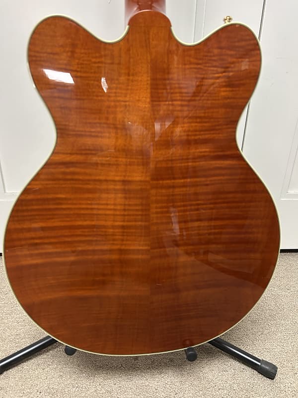 Gretsch Limited Edition Electromatic Broadkaster Semi Hollow Body Electric Guitar Roundup Orange. It is in very good condition with some light signs of use (shallow surface scratches or smudges that don’t show up in pictures and can only be seen upon close inspection)