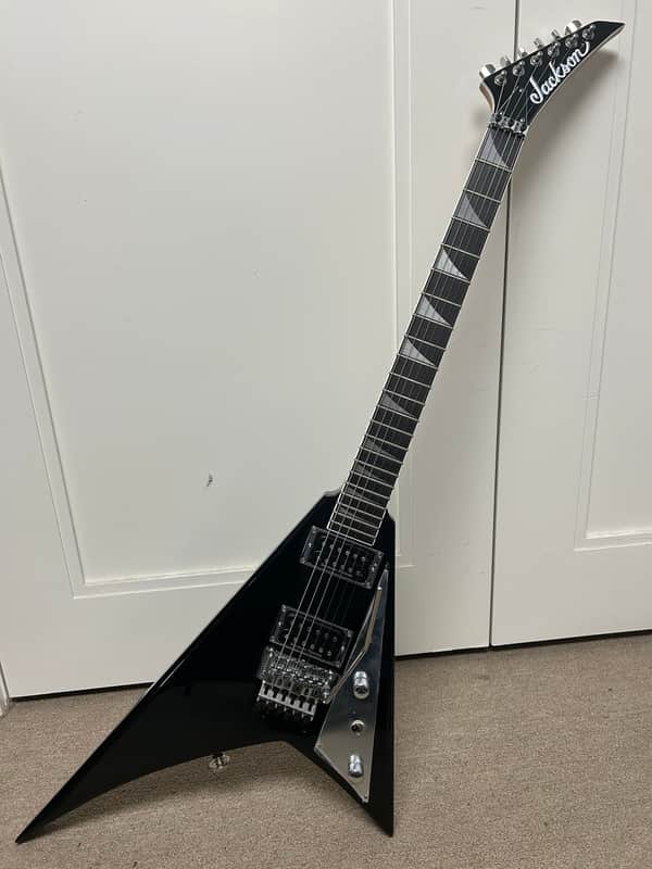 Jackson Pro Series RR Rhoads Electric Guitar - Gloss Black. Both points have chips in them that need to be sealed up to prevent further chipping (pictured) Aside form that, It is in very good condition with some light signs of use (shallow surface scratches or smudges that don’t show up in pictures and can only be seen upon close inspection)