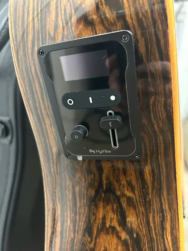 Lag Tramontane Hyvibe THV30DCE Acoustic Guitar w/Electronics- Natural. There's some surface level flaws in the lacquer on the back of the guitar. Aside from that, It is in very good condition with some light signs of use (shallow surface scratches or smudges that don’t show up in pictures and can only be seen upon close inspection)