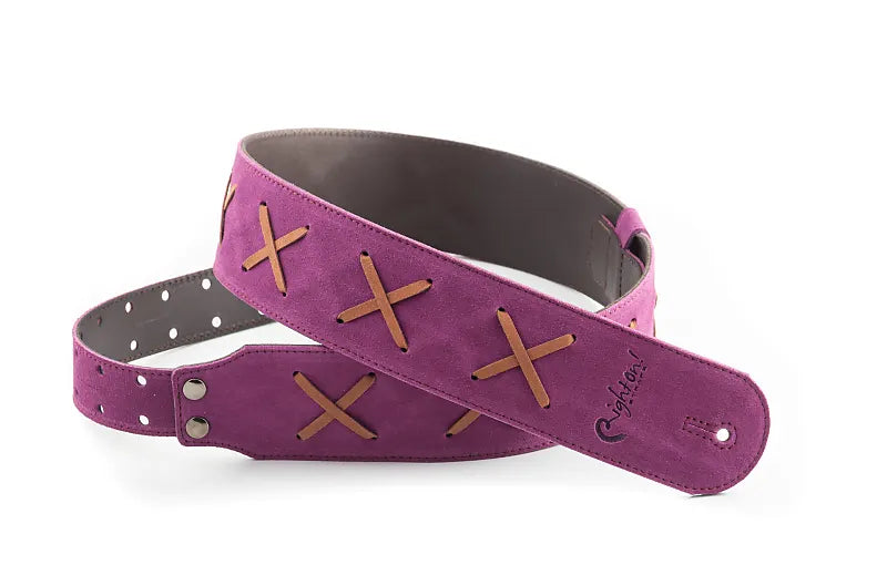Guitar strap with crossed strips and purple color, a similar strap to this one was owned by Jimi Hendrix, who wore it in the famous Isle of Wight live show in 1970.