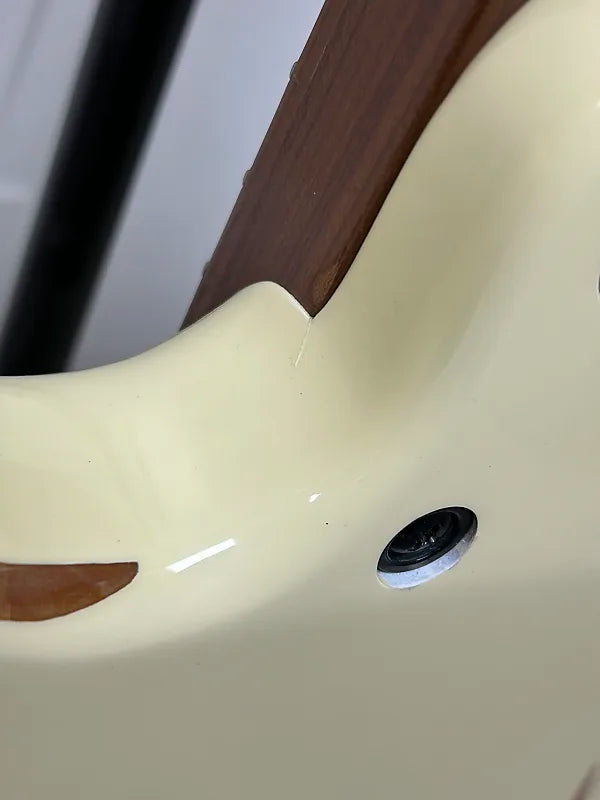 Schecter J-4 Nikki Sixx 4 String Bass - Worn Ivory. Aside from the intentional relic-ing, there is a small crack in one neck pocket. Aside from that, It is in very good condition with some light signs of use (shallow surface scratches or smudges that don’t show up in pictures and can only be seen upon close inspection)